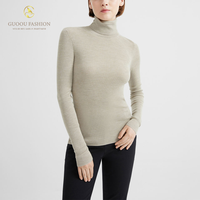 Suéter de punto de cuello alto elegante de aguja fina lisa, ropa interior de otoño e invierno, Jersey de punto ajustado para mujer